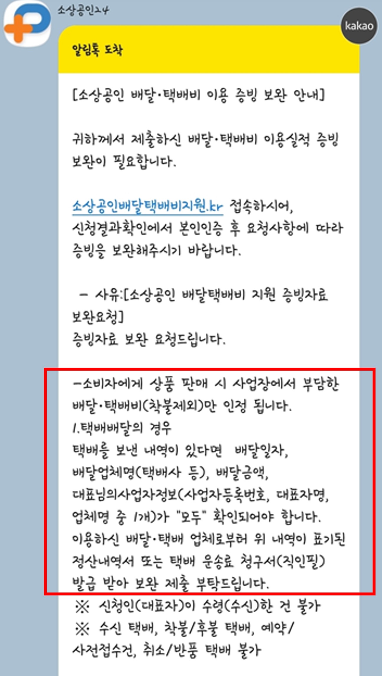 소상공인 택배비 지원 증빙 자료 제출 예시
