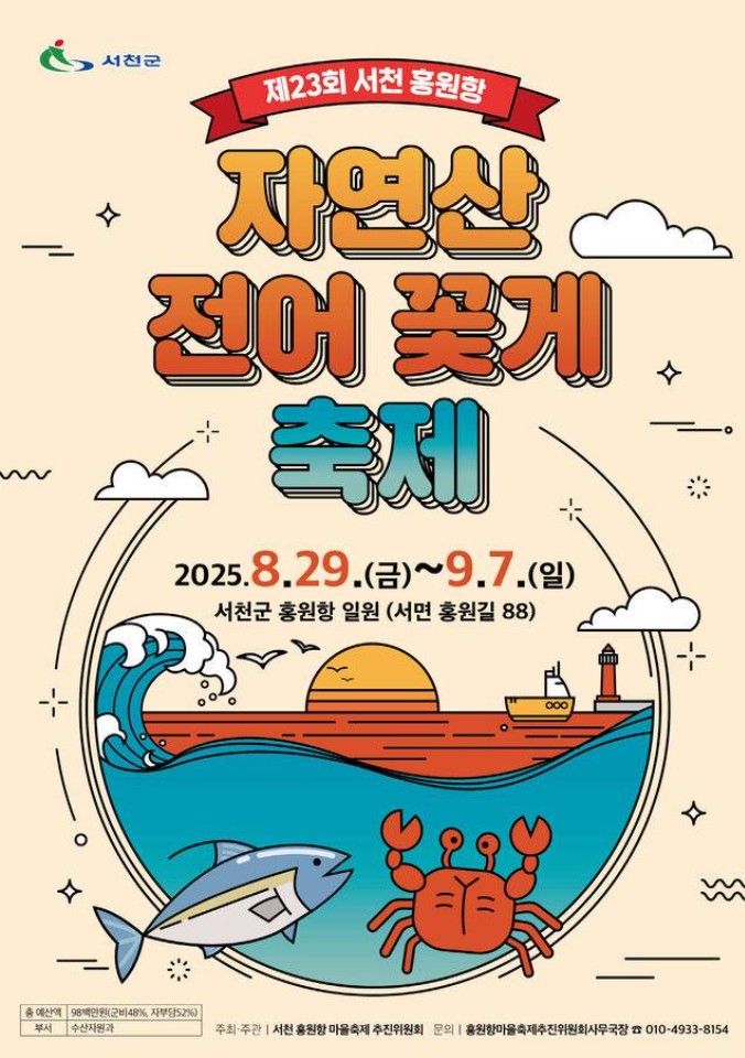 가을 바다의 정취와 신선한 전의 고소함이 가득한 2025년 제23회 서천 홍원항 자연산 전어 꽃게 축제를 소개합니다.