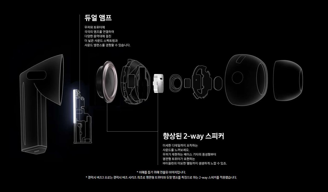 - 블레이드(blade) 디자인: 갤럭시버즈3 프로와 유사한 디자인으로 콩나물 줄기형 디자인 적용